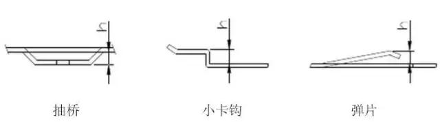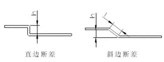 3 Z折:Z折又稱為斷差,根據成形角度分為直邊斷差和斜邊斷差,加工方式則依照斷差高度而定, 直邊斷差當斷差高度h小于3.5倍料厚時采用斷差?;蛞啄3尚?大于3.5倍料厚時采用正常一正一反兩折完成. 斜邊斷差當斜邊長度l小于3.5倍料厚時采用斷差?;蛞啄3尚?大于3.5倍料厚時采用正常一正一反兩折完成